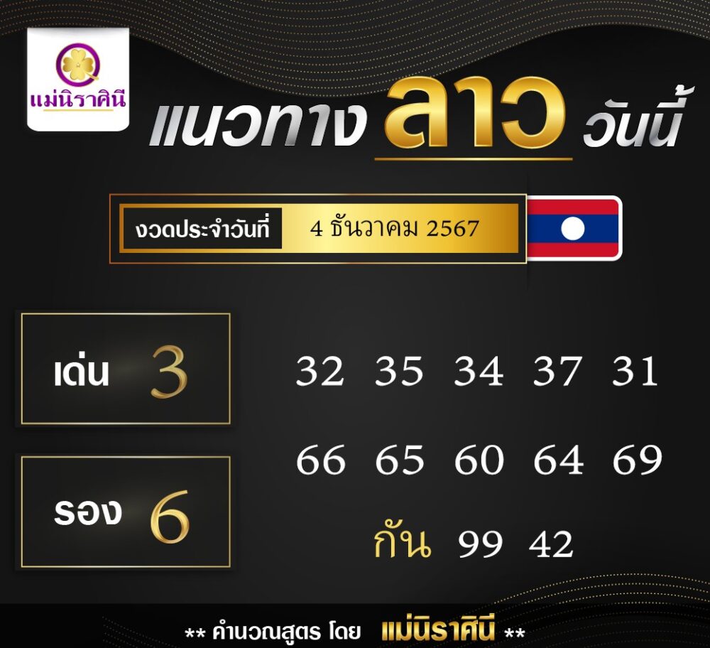 แนวทางเลขเด็ดหวยลาวประจำวันพุธที่ 4 ธันวาคม 2567