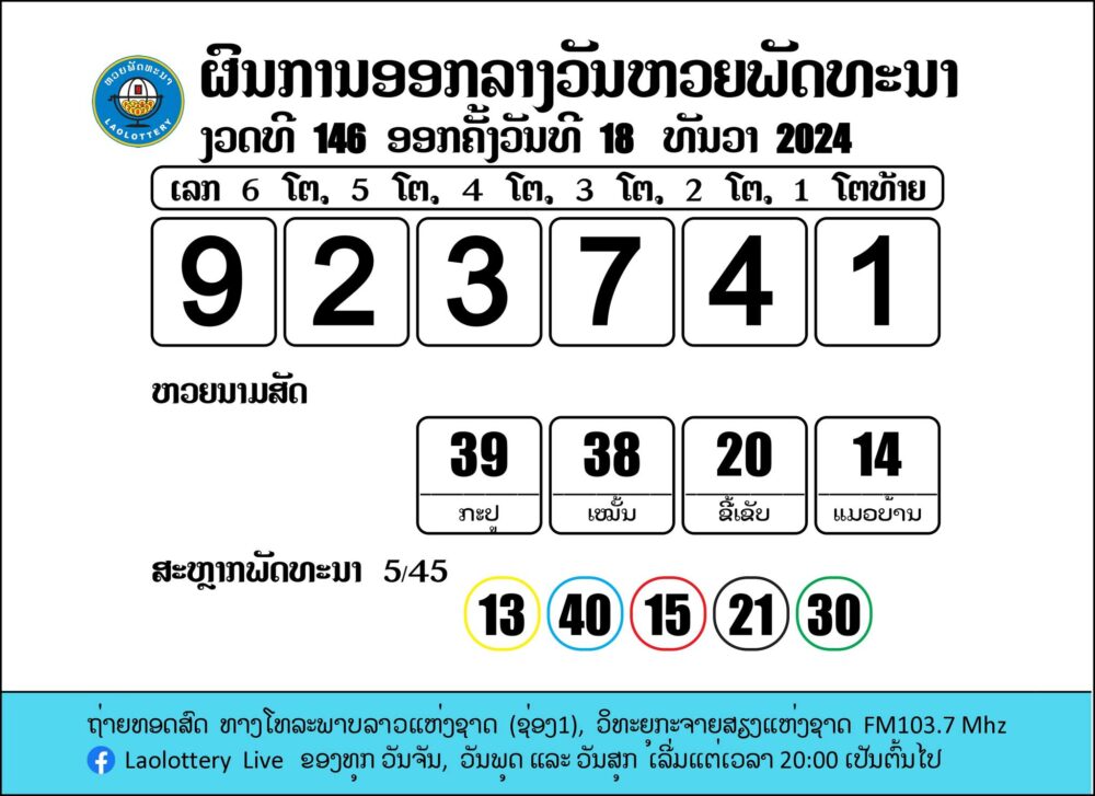 ตรวจหวยลาว (ຫວຍລາວ) งวดประจำวันที่ 18/12/67
