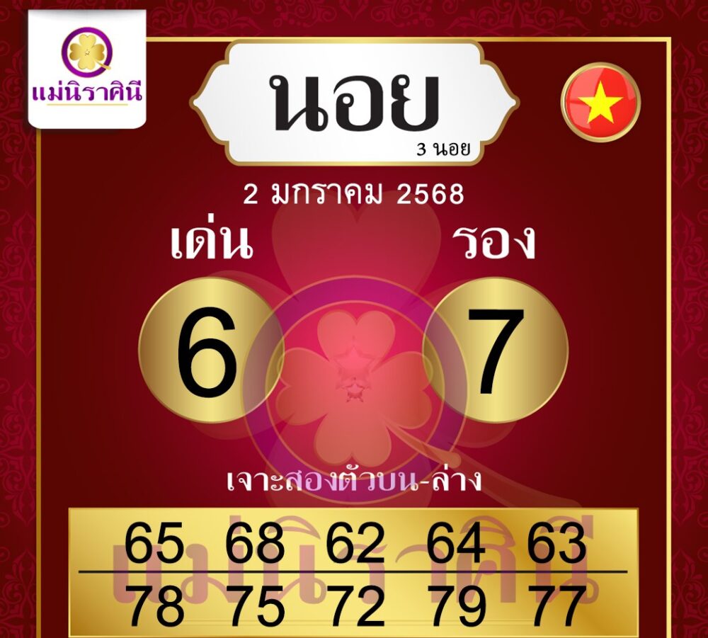 เริ่มต้นด้วยสำนักดังอย่าง แม่นิราศินี ที่ยังคงความแม่นยำเช่นเคย วันนี้เน้นไปที่เลข เด่น 6 และ รอง 7 โดยแนะนำเลขสองตัวที่น่าจับตามองอย่าง 65, 68, และ 72 สำหรับคอหวยที่ชื่นชอบความมั่นใจ ลองเลือกเลขในชุดนี้ไปรับโชคดูได้ครับ!