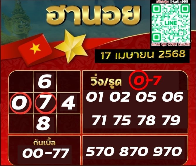 ชุดเลขเด็ดหวยฮานอย วันที่ 17/4/2568