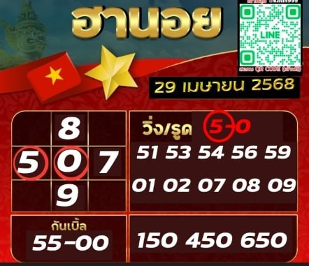 ชุดเลขเด็ดหวยฮานอย วันที่ 29/4/2568