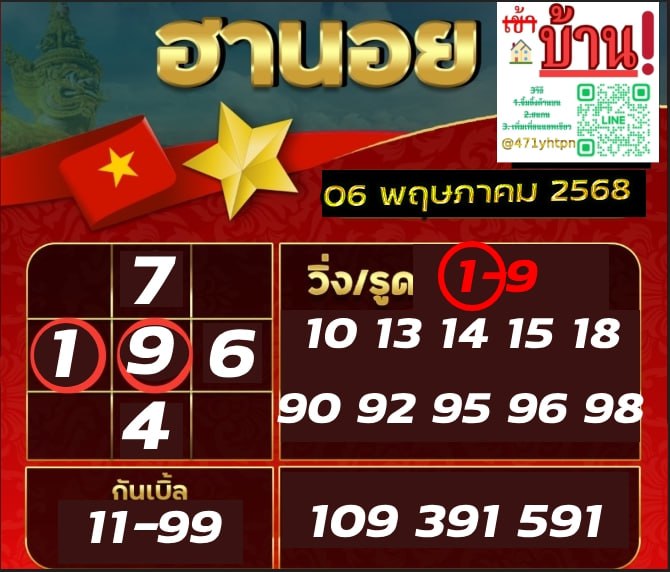 ชุดเลขเด็ดหวยฮานอย วันที่ 6/5/2568