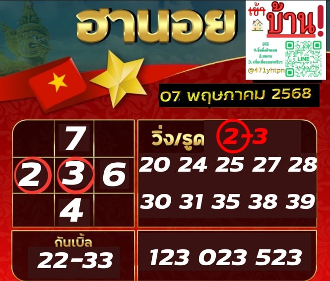 ชุดเลขเด็ดหวยฮานอย วันที่ 7/5/2568