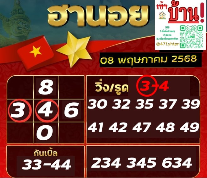 ชุดเลขเด็ดหวยฮานอย วันที่ 8/5/2568