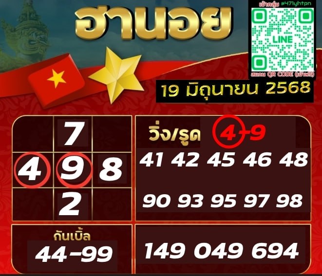 ชุดเลขเด็ดหวยฮานอย วันที่ 19/6/2568