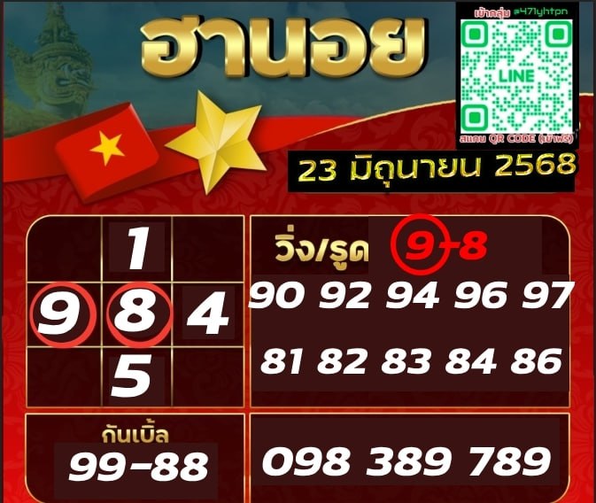 ชุดเลขเด็ดหวยฮานอย วันที่ 23/6/2568