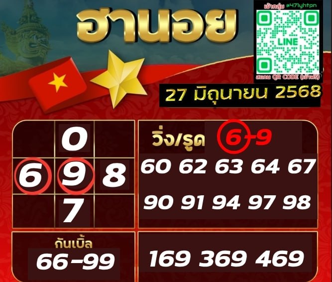 ชุดเลขเด็ดหวยฮานอย วันที่ 27/6/2568