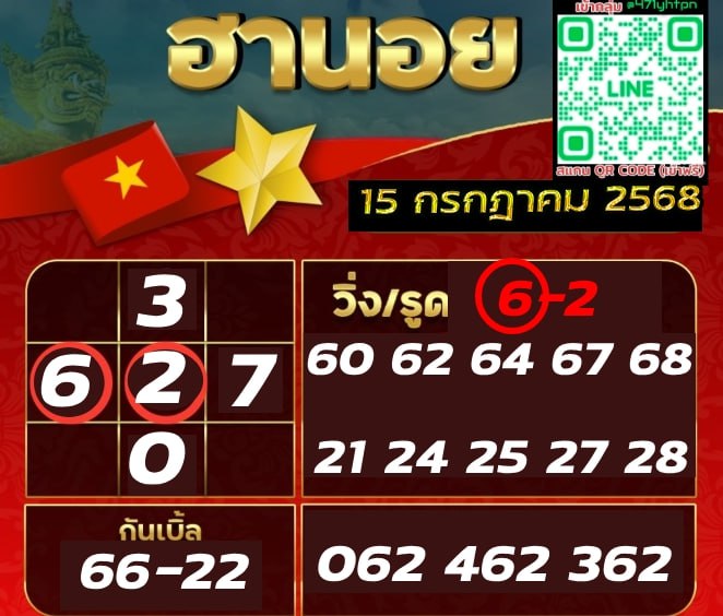 ชุดเลขเด็ดหวยฮานอย วันที่ 15/7/2568