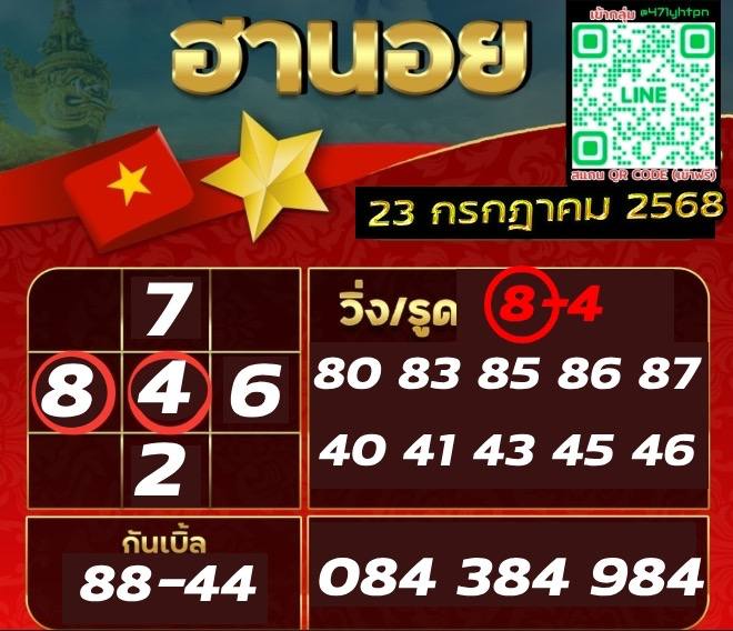ชุดเลขเด็ดหวยฮานอย วันที่ 23/7/2568
