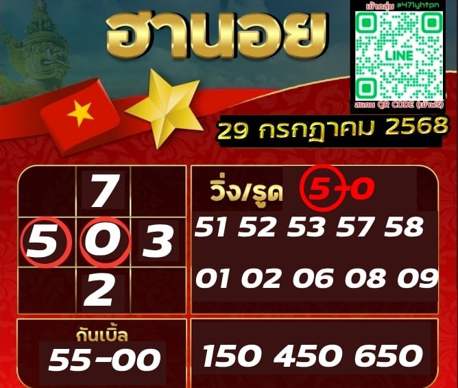 ชุดเลขเด็ดหวยฮานอย วันที่ 29/7/2568