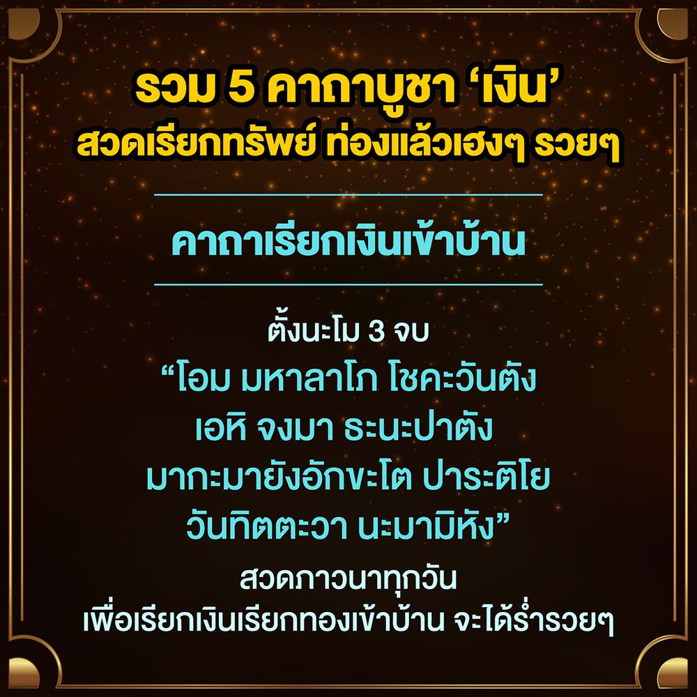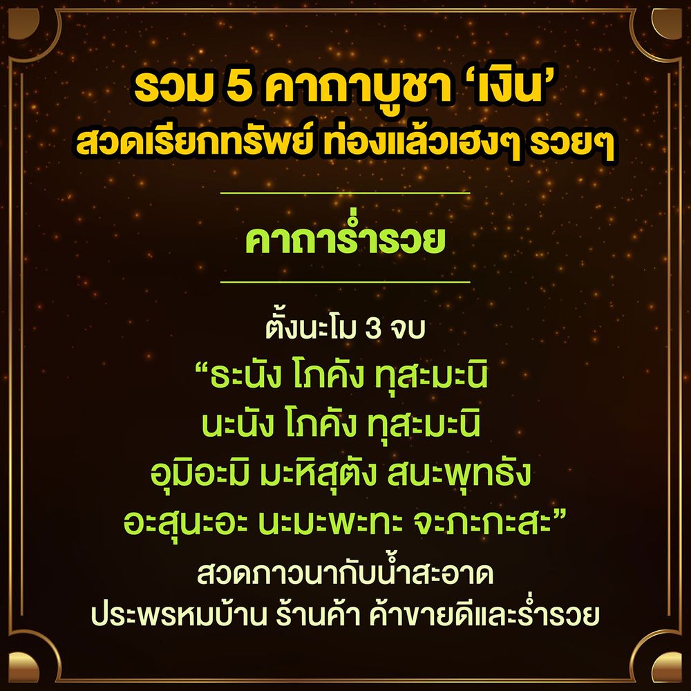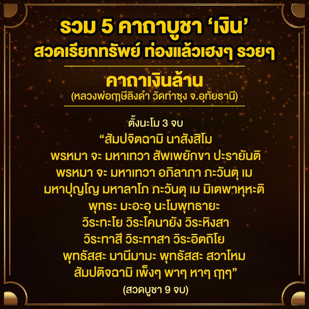 ที่มา : ท่องแล้วเฮง! สวดแล้วรวย! รวม 5 คาถาเงินล้าน กระเป๋าตุงรัวๆ (thairath.co.th)