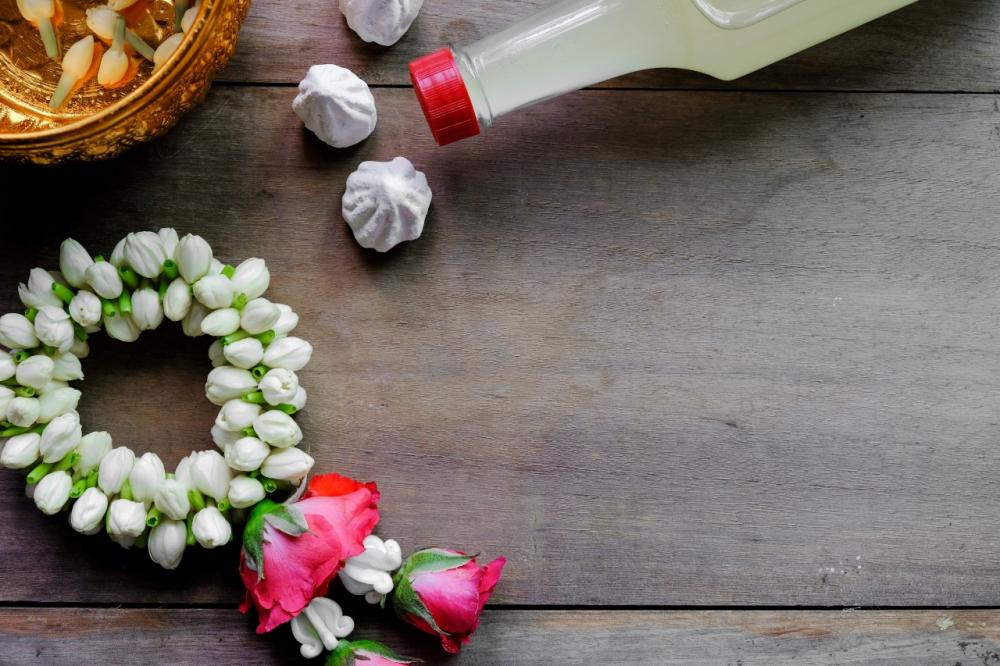 5. เครื่องหอม ดอกไม้ อย่างเช่น มะลิ กลีบกุหลาบ ดอกรัก น้ำปรุง หรือน้ำอบ เป็นต้น