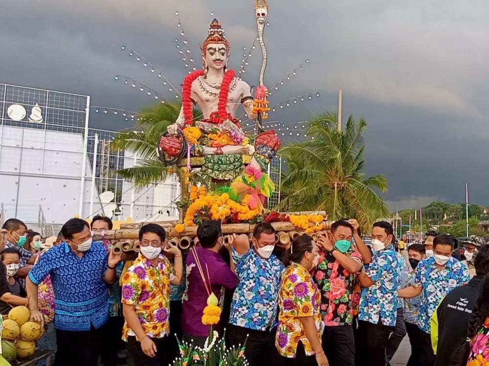 เมื่อเวลา 17.00 น. วันที่ 18 เมษายน 2565 ที่บริเวณชายทะเลบางพระ หมู่ 4 ตำบลบางพระ อำเภอศรีราชา จังหวัดชลบุรี ได้ทำพิธีบวงสรวงสักการะองค์พญายม โดยมีนายวิทยา คุณปลื้ม นายกองค์การบริหารส่วนจังหวัดชลบุรี นายสมเจต เกตุวัตถา นายกเทศมนตรีตำบลบางพระ พร้อมสมาชิกสภาองค์การบริหารส่วนจังหวัดชลบุรี สมาชิกสภาเทศบาลตำบลบางพระ และชาวบ้าน นักท่องเที่ยว ร่วมกันทำพิธี
