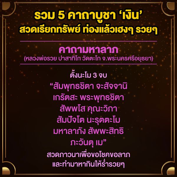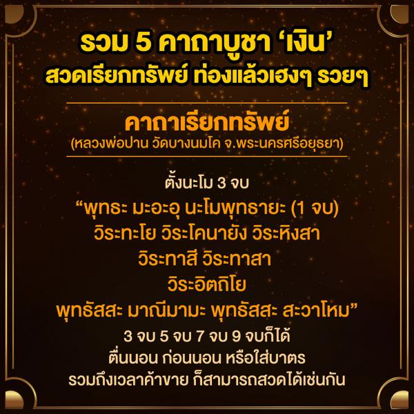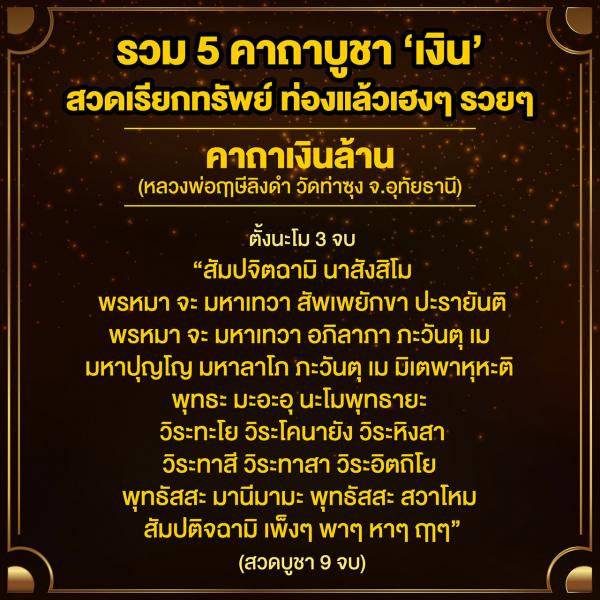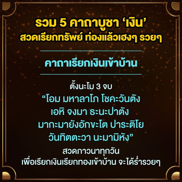 ที่มา : ท่องแล้วเฮง! สวดแล้วรวย! รวม 5 คาถาเงินล้าน กระเป๋าตุงรัวๆ (thairath.co.th)