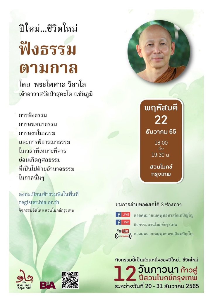 ที่มา : “สวนโมกข์กรุงเทพ” ชวนร่วมกิจกรรม ทำบุญ เจริญสติ สวดมนต์ภาวนาข้ามปี ให้ชีวิตดี รับปีเถาะ (sanook.com)