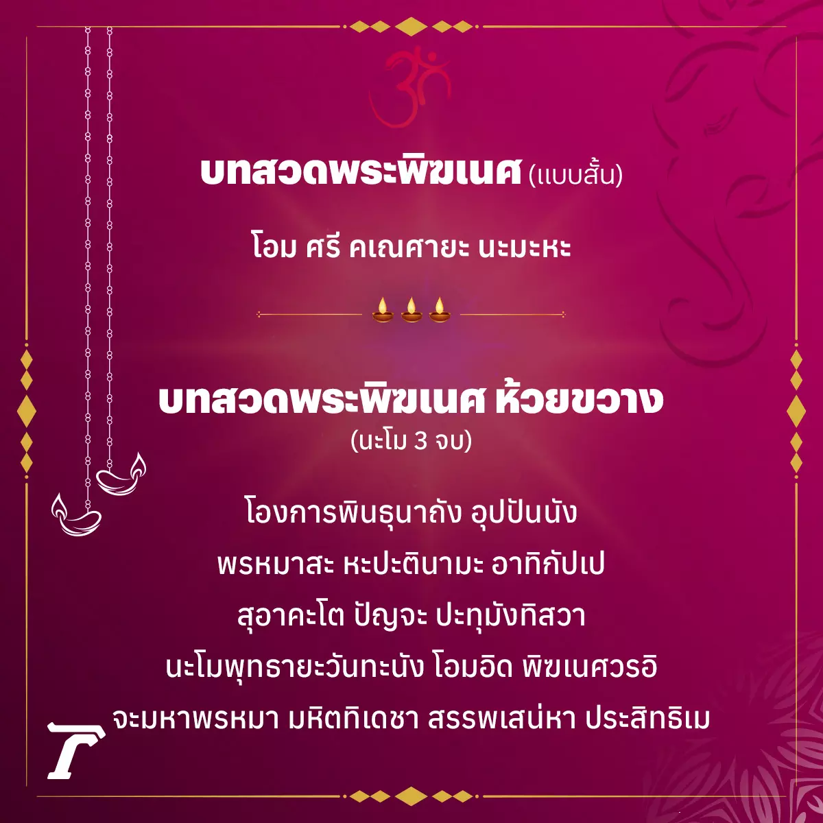 ที่มา : บทสวดพระพิฆเนศ เทพแห่งความสำเร็จ ปลดหนี้ บันดาลโชคลาภ (thairath.co.th)