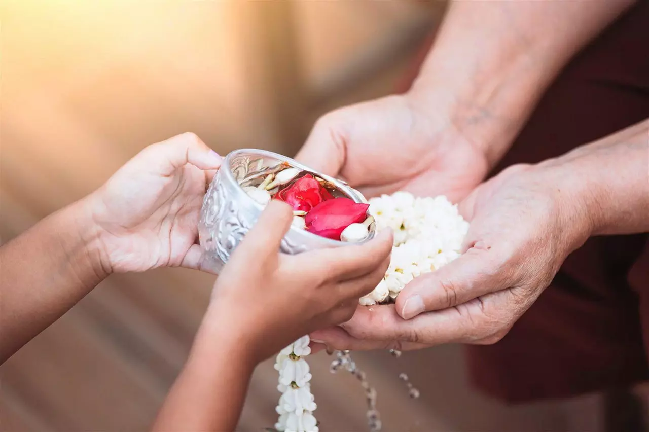 ...ขอให้คุณพ่อคุณแม่ คุณปู่คุณย่า คุณตาคุณยาย คุณพี่คุณน้อง อโหสิกรรมให้ด้วย แล้วเอาน้ำรดมือรดเท้า