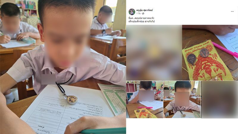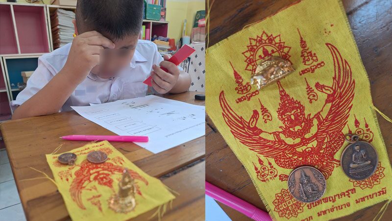 สายมูของแท้! นักเรียน ป.3 พกของขลัง ยันต์-พระเครื่อง มาสอบปลายภาคด้วย