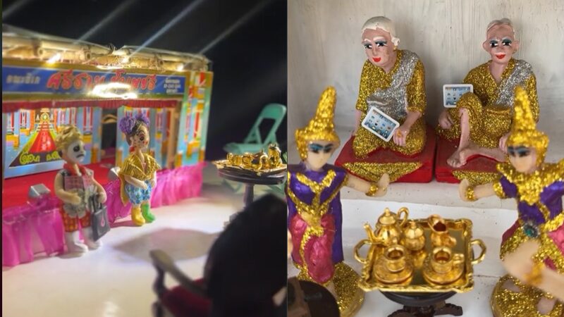 แถมยังเอาใจเจ้าที่แบบสุด ๆ ยกทั้งโรงละครงิ้ว โรงลิเกขนาดย่อส่วนเท่าตุ๊กตา มาจัดเต็มโชว์ให้ด้วย กลายเป็นวิดีโอไวรัลเรียกรอยยิ้มจากโลกโซเชียลเลยทีเดียว