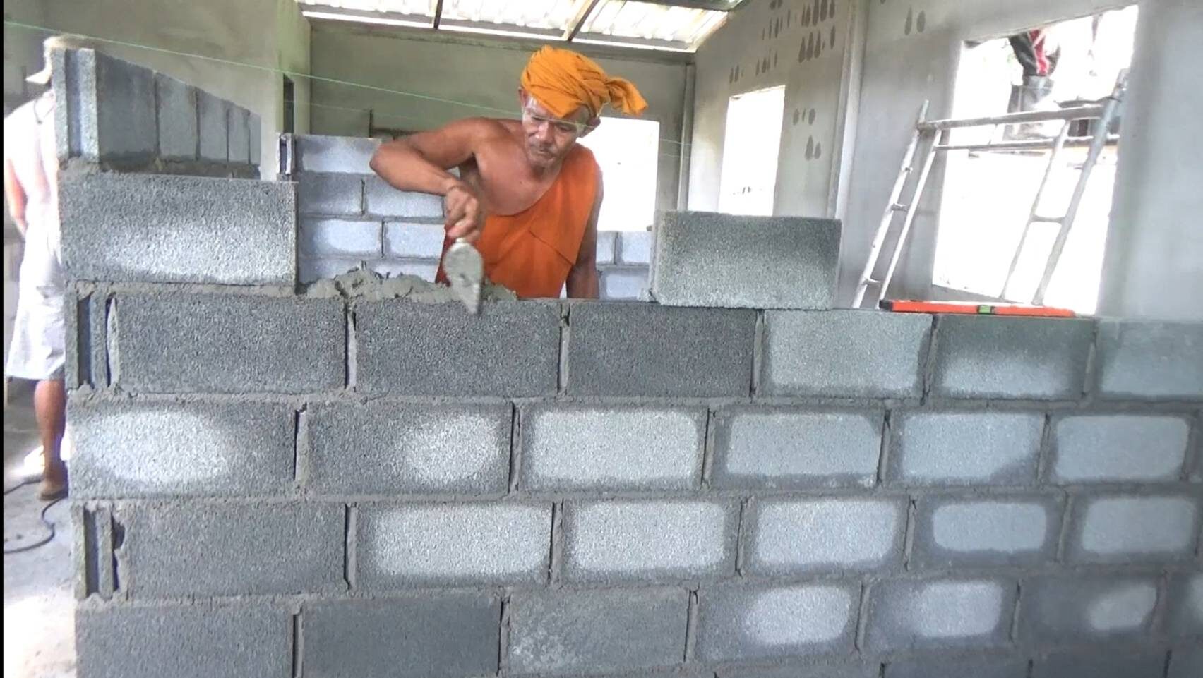 ซึ่งพระเคารพ ได้แวะเวียนมาเกือบทุกวัน เพื่อช่วยก่ออิฐ ฉาบปูน ขนหินดินทรายช่วยชาวบ้าน เพื่อให้สองแม่ลูกได้อยู่อาศัยโดยเร็วที่สุด โดยสองแม่ลูกต่างรู้สึกดีใจ และมาดูการสร้างบ้านหลังใหม่ทุกวัน เนื่องจากก่อนหน้านี้ ผู้เป็นแม่มีความฝันว่าอยากจะมีบ้านหลังใหม่สักหลัง เพราะลูกสาวกำลังโตขึ้น และใช้ชีวิตในบ้านหลังเก่าอย่างยากลำบาก แต่ความฝันยังริบหรี่เพราะมีฐานะยากจน