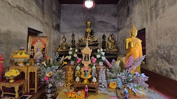 สำหรับพระพุทธรูปที่อยู่รอบพระประธานในโบสถ์ (วิหาร) แห่งนี้ ล้วนแต่เป็นพระพุทธรูปเก่าแก่ที่อยู่คู่กับโบสถ์มานานกว่า 300 ปีแล้ว ส่วนใหญ่จึงมีรอยแตกร้าว เพราะหากเทียบกับอายุของโบสถ์เก่าหลังนี้ก็มีมาตั้งแต่ พ.ศ.2222 จึงเกิดความชำรุดทรุดโทรมไปตามกาลเวลา