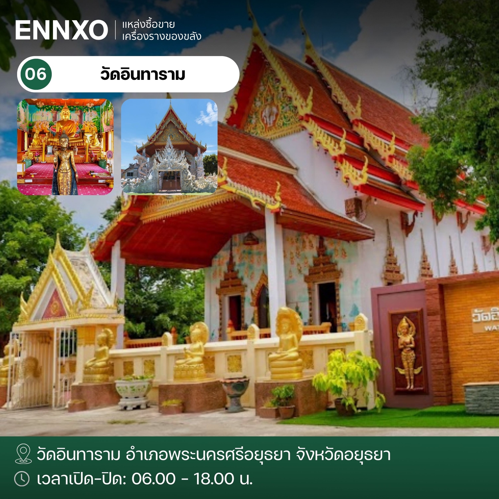 ใครแวะไปไหว้พระอยุธยาเอ็นโซ่มีอีกหนึ่งวัดที่อยากแนะนำนั่นคือ วัดอินทาราม อยุธยา หรือเรียกสั้นๆ ว่าวัดอินท์ สร้างขึ้นราวปลายสมัยอยุธยารอยต่อแผ่นดินพระเจ้าตาก โดยวัดอินทาราม อยุธยา มีประวัติความเป็นมาที่ยาวนานเป็นพื้นที่ของสิ่งศักดิ์สิทธิ์โบราณหลายชั่วอายุ ปัจจุบันวัดได้บูรณปฏิสังขรณ์ใหม่อย่างวิจิตร โดยเฉพาะกำแพงรอบอุโบสถมีพุทธศิลป์สถาปัตยกรรมงดงาม ไฮไลต์เด่นๆ ของวัดอินทาราม จังหวัดอยุธยาคือ ประดิษฐานหลวงพ่อธรรมจักรขจัดภัยในพระหัตถ์มีจักรประดับพลอยนพเก้าเชื่อว่าสามารถลบล้างเคราะห์กรรม ไล่สิ่งอัปมงคลได้