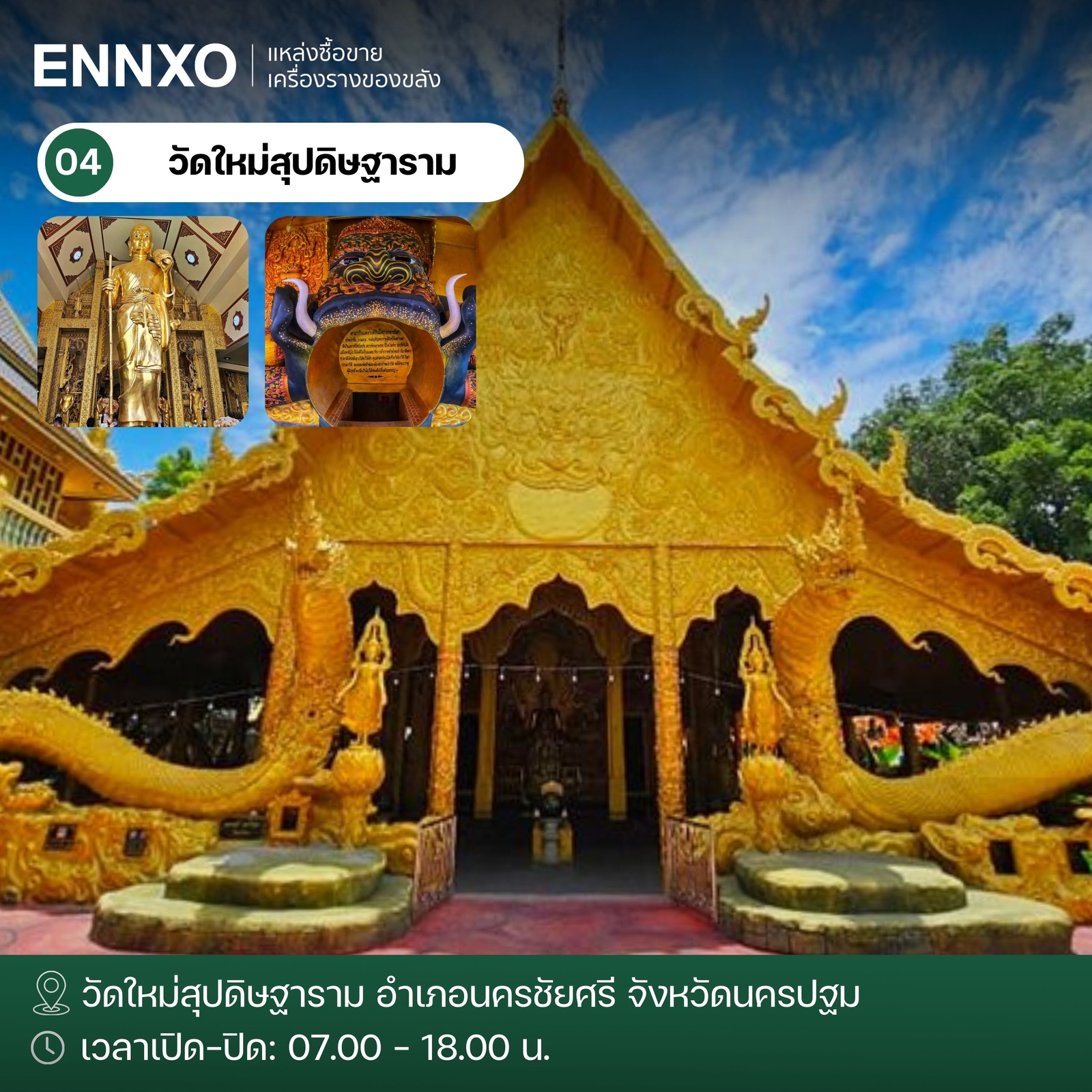 วัดใหม่สุปดิษฐาราม พระสีวลีองค์ใหญ่ อำเภอนครชัยศรี นครปฐม สถานที่ที่รายล้อมไปด้วยขุมพลังความศักดิ์สิทธิ์ ประกอบไปด้วยท้าวเวสสุวรรณ ลอดซุ้มพระราหู หลวงพ่อเสวยสุขมงคลปฐมชยาภิวัฒน์ (หลวงพ่อใจดี) ไฮไลต์เด่นที่ห้ามพลาดคือ ไหว้ขอพรพระสิวลีองค์ใหญ่ที่ใครขอใครไหว้ก็สมหวังเรียกทรัพย์เข้ากระเป๋าเกือบทุกราย ซึ่งหลังจากที่ขอพรได้สำเร็จแล้วก็นิยมนำน้ำผึ้งมาถวายบอกกล่าว แต่ไม่แนะนำให้บนบานควรอธิษฐานขอพรจะดีกว่า