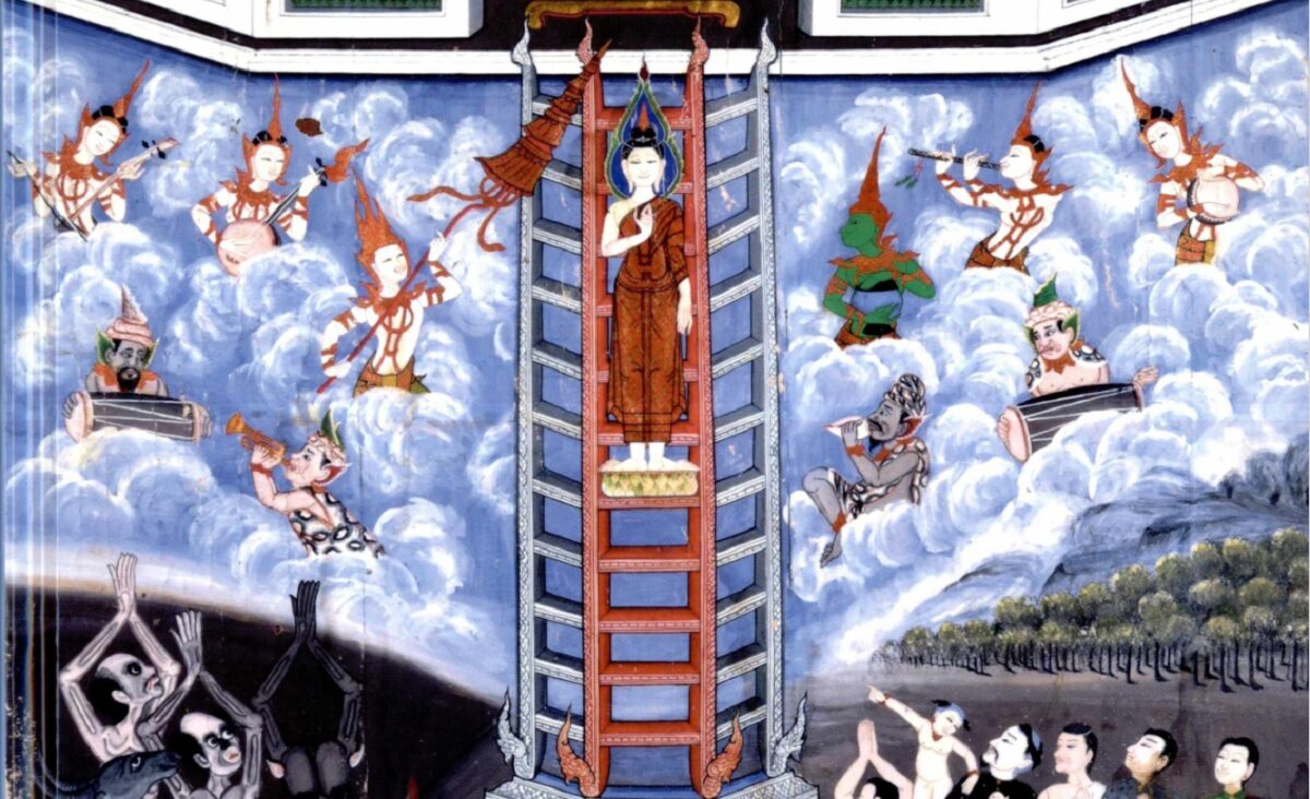 ภาพพระพุทธเจ้าเสด็จลงจากดาวดึงส์ (ภาพจาก หนังสือมรดกเมืองสระบุรี, องค์การบริหารส่วนจังหวัดสระบุรี)