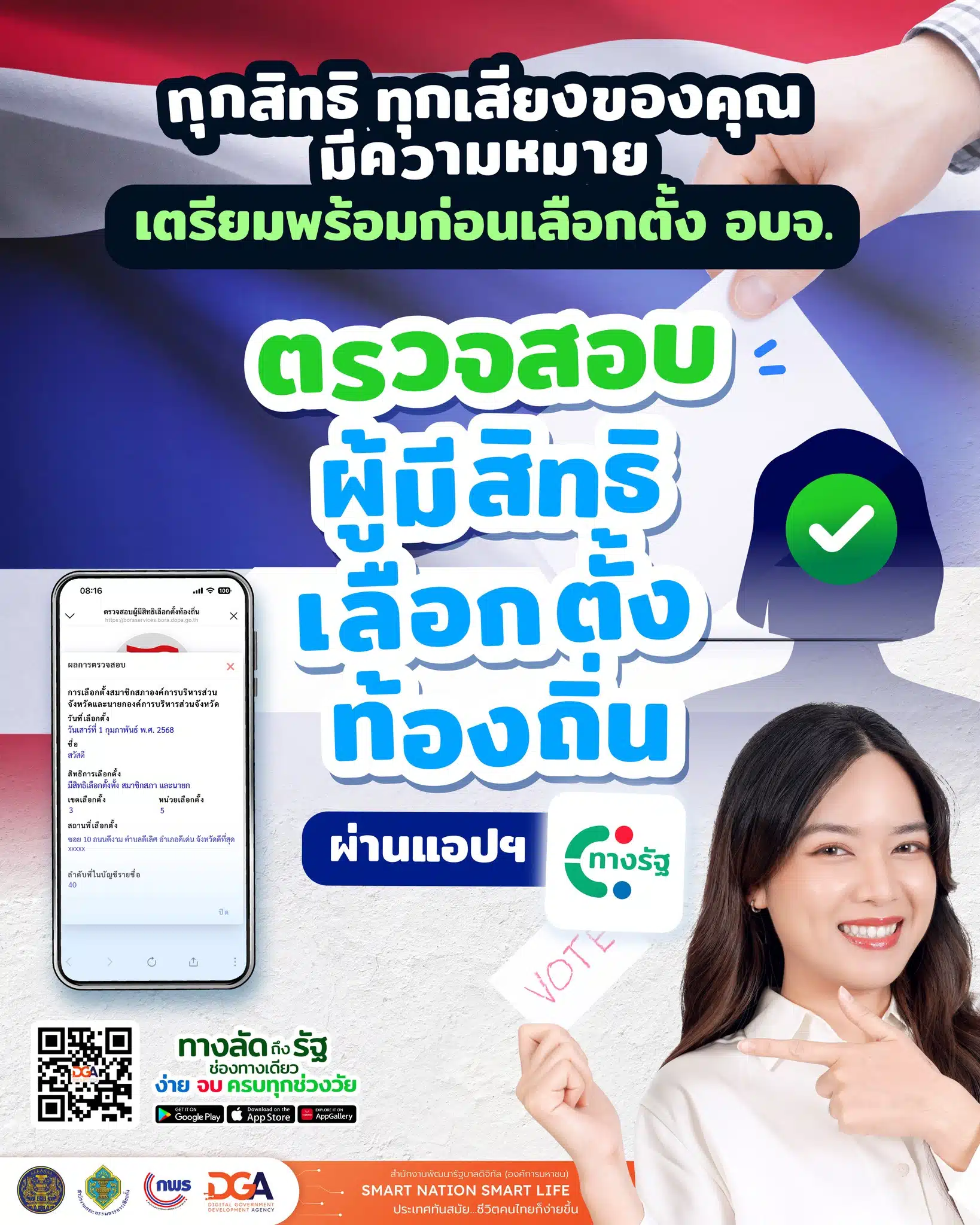 วิธีตรวจสอบผู้มีสิทธิเลือกตั้ง อบจ. 2568 แอปฯ ทางรัฐ เช็กช่องทางแจ้งไม่ใช้สิทธิ