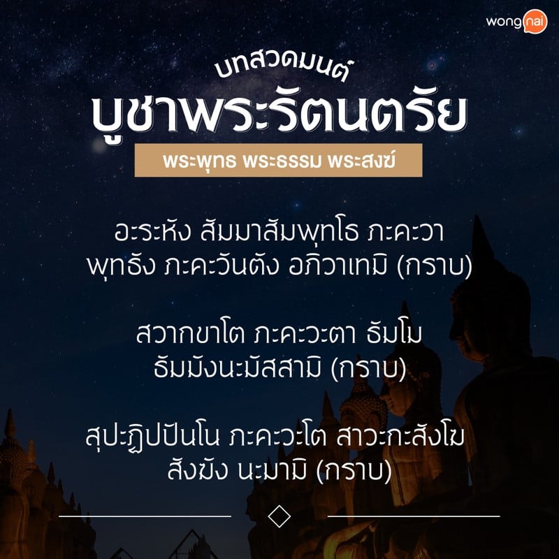 บทสวดมนต์นมัสการพึงระลึกถึงพระพุทธเจ้า พระธรรม และพระสงฆ์