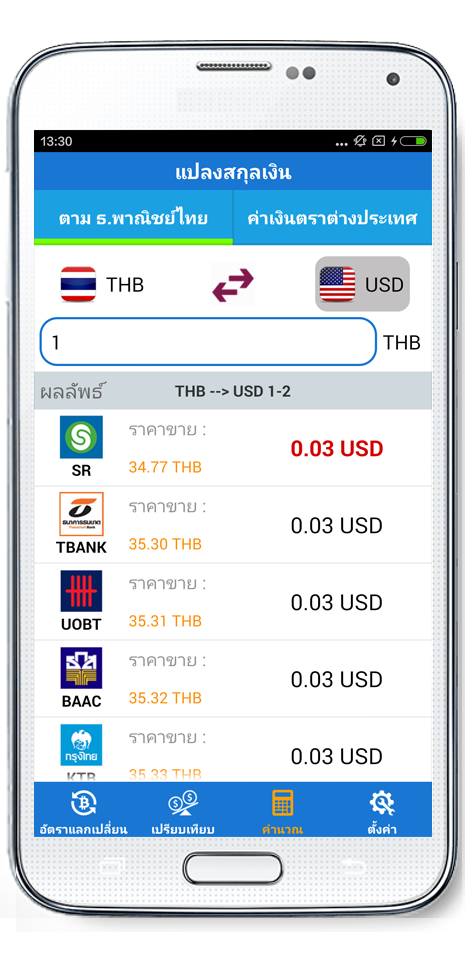 • คำนวณราคาซื้อ-ขายสกุลเงินต่างๆ ของแต่ละธนาคาร