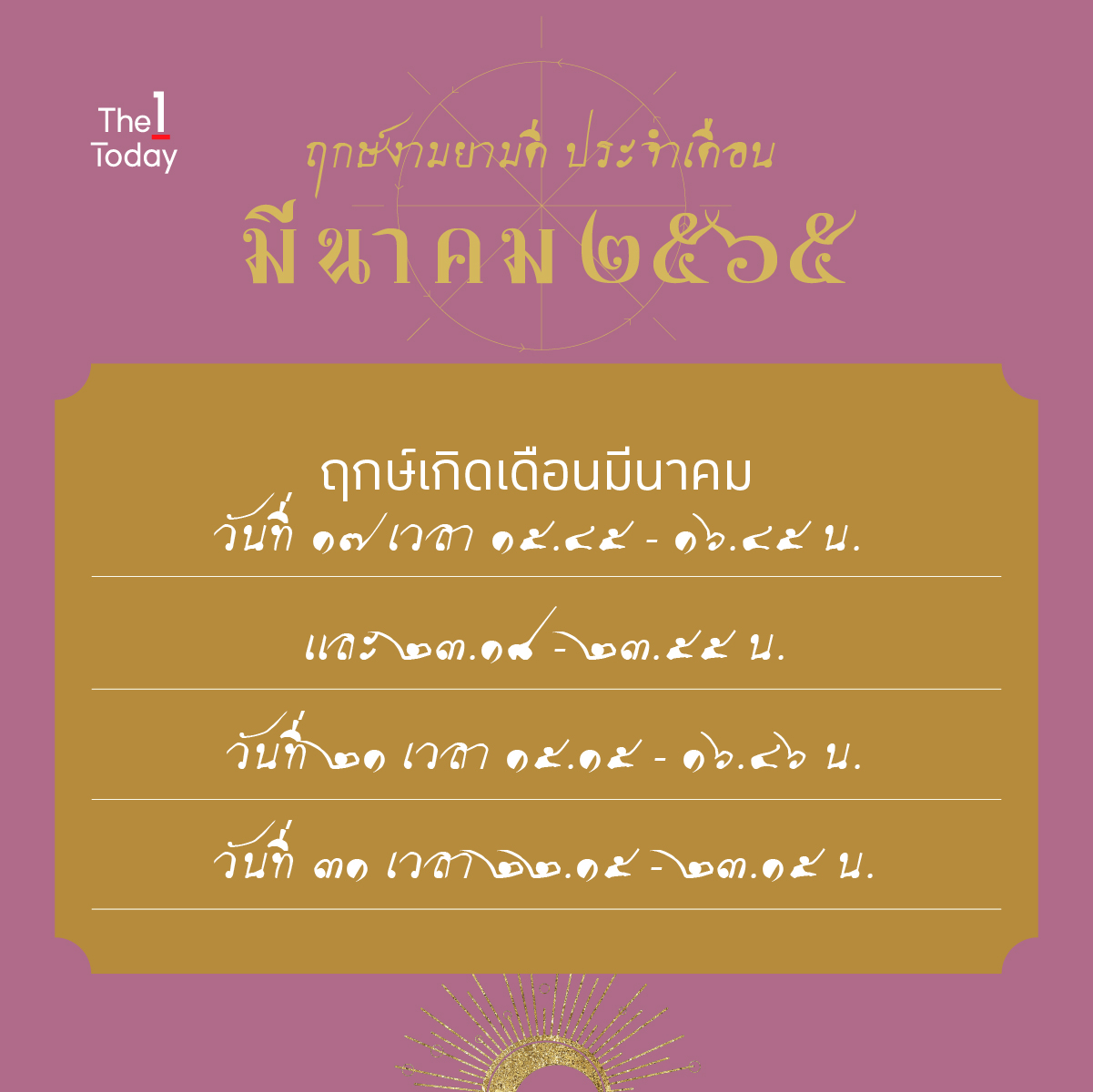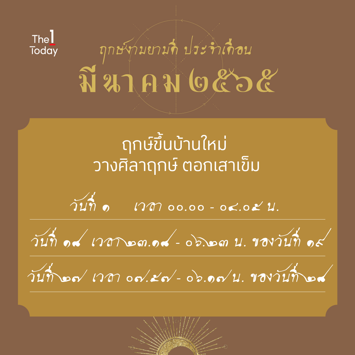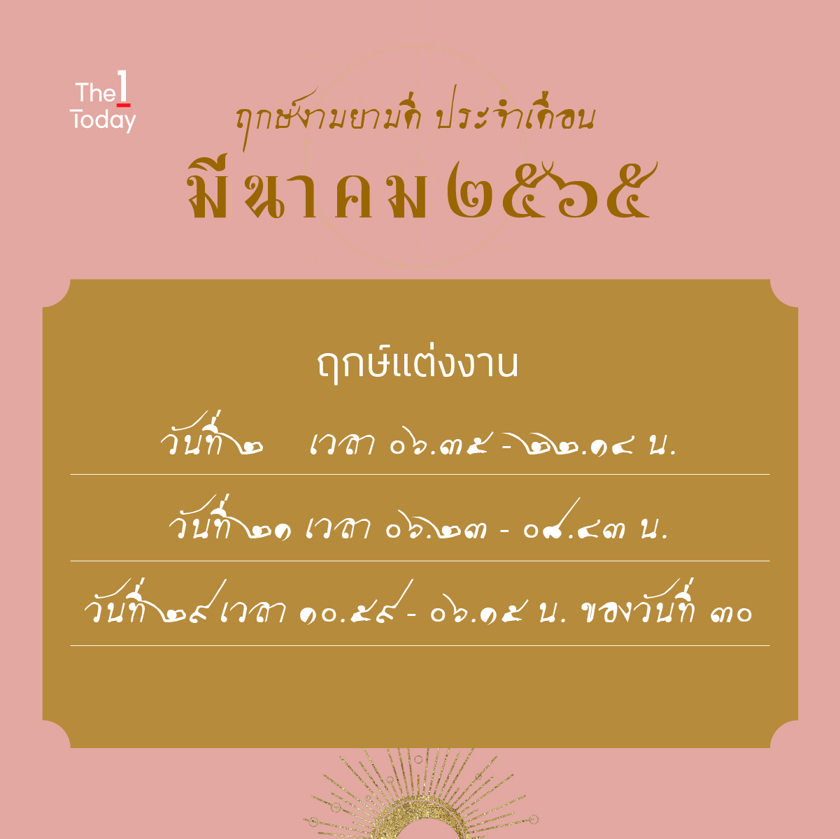 ที่มา : 1 ฤกษ์งาม ประจำเดือนมีนาคม 2565 | The 1 Today