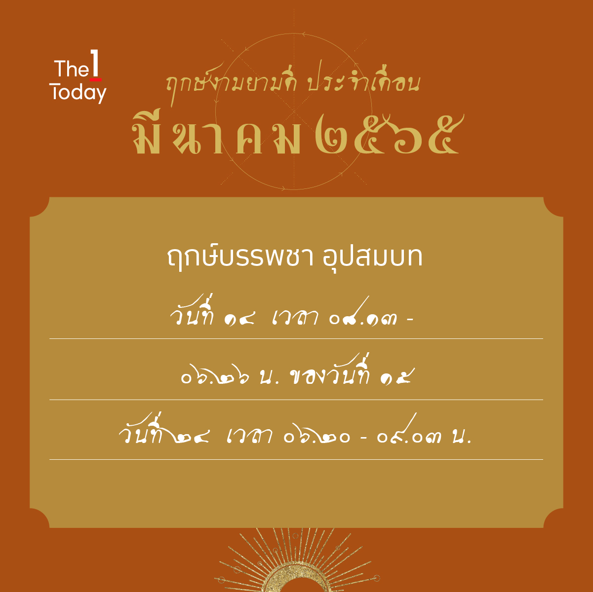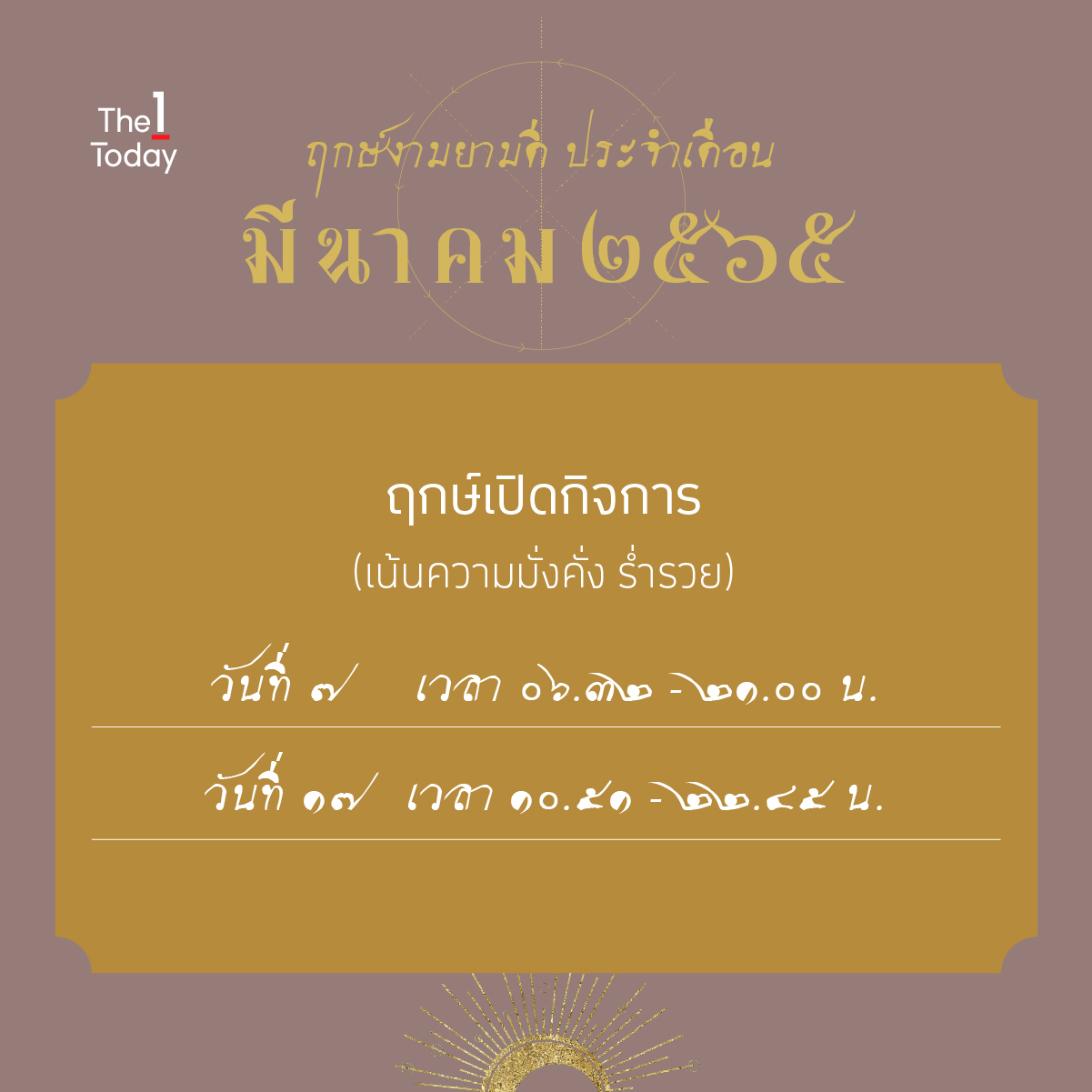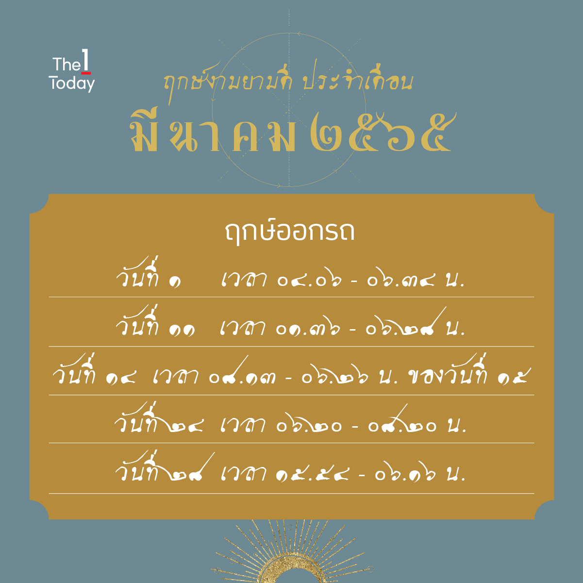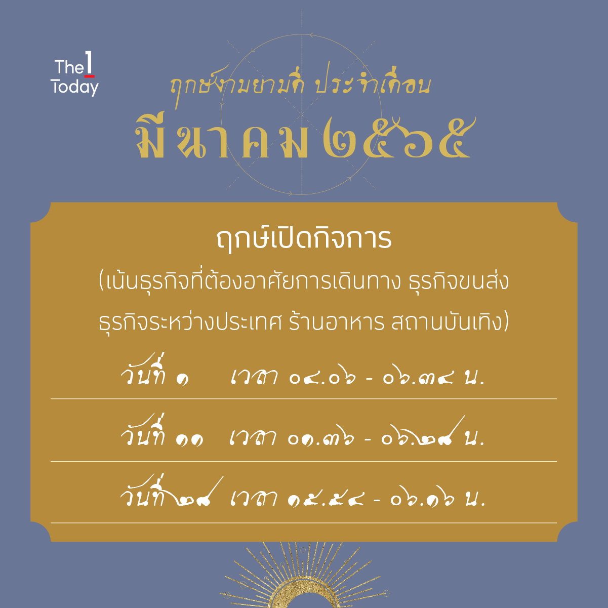 ที่มา : 1 ฤกษ์งาม ประจำเดือนมีนาคม 2565 | The 1 Today