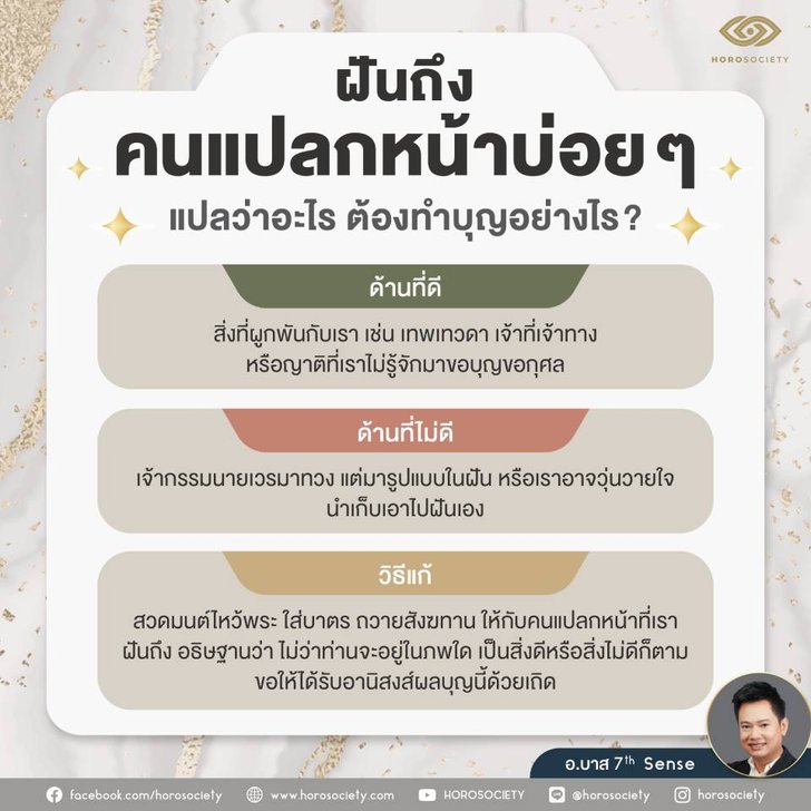ที่มา : ฝันถึงคนแปลกหน้าบ่อยๆ แปลว่าอะไร ต้องทำบุญอย่างไร ? โดย อ.บาส 7th sense (sanook.com)
