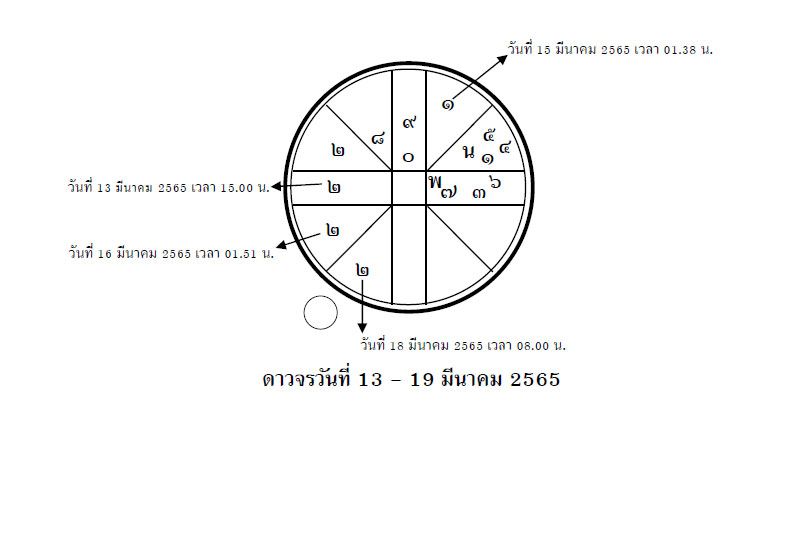 วันอาทิตย์ที่ 13 มีนาคม 2565 ห้ามประกอบการมงคล ดาวจันทร์เกาะเพ็ชฆาฏฤกษ์ ยกเข้าราศีกรกฎเวลา 15.00 น. และโคจรเข้าเกาะราชาฤกษ์ เวลา 21.36 น. วันนี้ ในช่วงเช้าถึงช่วงต้นของภาคบ่ายเหมาะกับกิจกรรมที่ต้องการความเด็ดขาดทางจิตใจ การเททองหล่อพระ การตั้งสัจจะในการลดละเลิกอบายมุข
