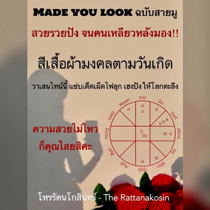 โหรรัตนโกสินทร์ แนะวิธี Made you look ฉบับสายมู ด้วย สีเสื่อผ้าเสริมดวงความรัก หรือ สีเสื้อผ้ามงคลตามวันเกิด มาดูกันว่าสีเสื้อผ้าที่เหมาะกับผู้ที่เกิดแต่ละวันมีสีอะไรบ้าง และดวงความรักของคุณจะเป็นอย่างไร โหรรัตนโกสินทร์ ทำนายทายทักไว้ ดังนี้