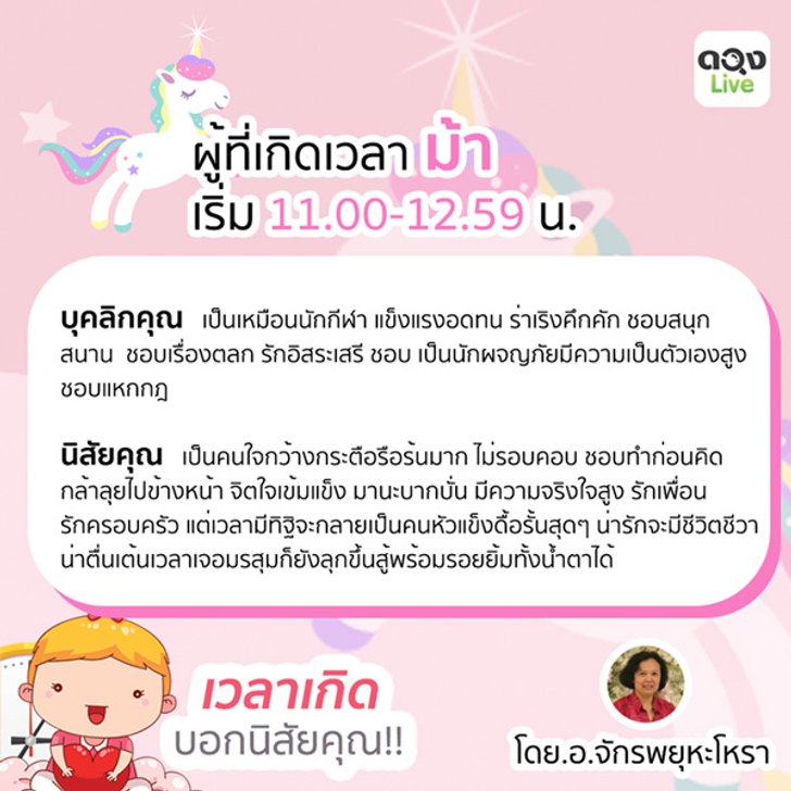 ผู้ที่เกิดเวลา ม้า เริ่ม 11.00 - 12.59 น.