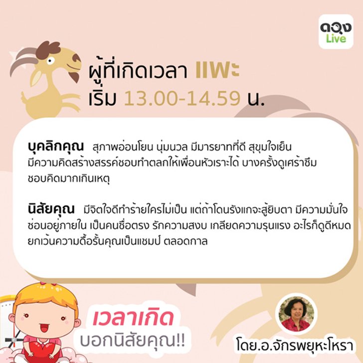 ผู้ที่เกิดเวลา แพะ เริ่ม 13.00 -14.59 น.
