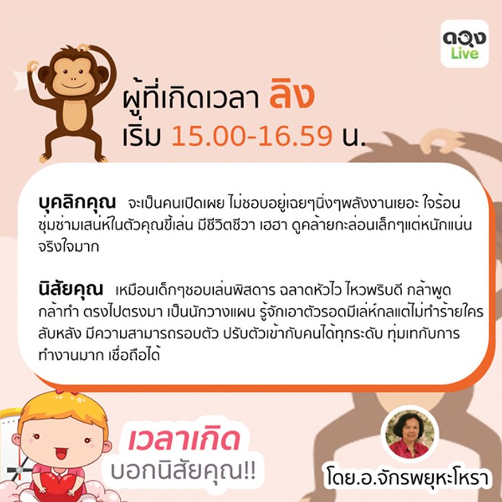 ผู้ที่เกิดเวลา ลิง เริ่ม 15.00 -16.59 น.