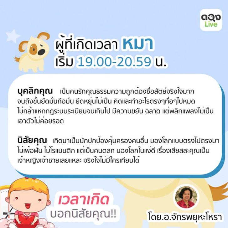 ผู้ที่เกิดเวลา หมา เริ่ม 19.00 - 20.59 น.