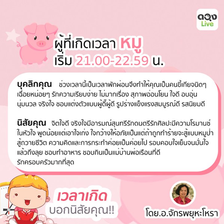 ผู้ที่เกิดเวลา หมู เริ่ม 21.00 -22.59 น.