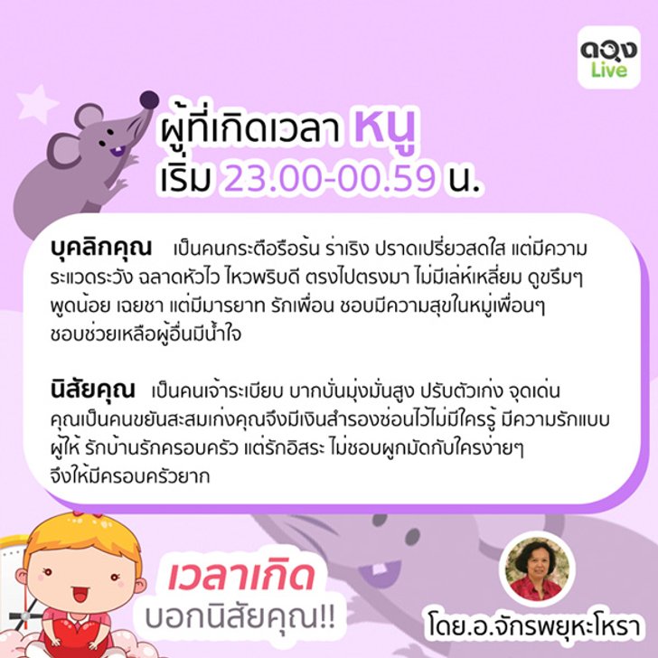 ผู้ที่เกิดเวลา หนู เริ่ม 23.00 - 00.59 น.