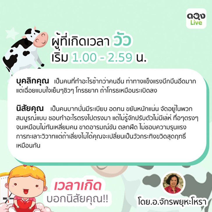 ผู้ที่เกิดเวลา วัว เริ่ม 01.00 - 02.59 น.