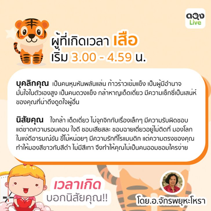 ผู้ที่เกิดเวลา เสือ เริ่ม 03.00 - 04.59 น.