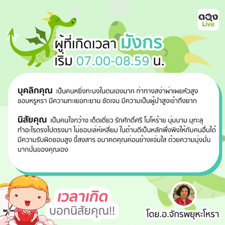 ผู้ที่เกิดเวลา มังกร เริ่ม 07.00 - 08.59 น.