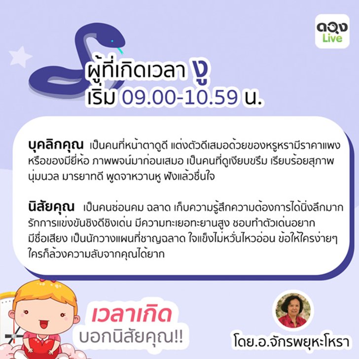 ผู้ที่เกิดเวลา งู เริ่ม 09.00 -10.59 น.