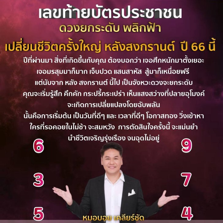 เลขท้ายบัตรประชาชนของคนดวงดีพลิกฟ้า หลังสงกรานต์ปี 66 โดย หมอบอย