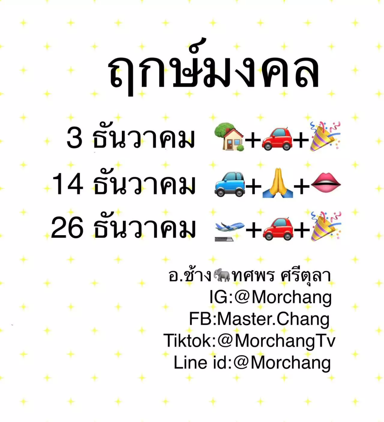หมอช้าง ทศพร เปิดฤกษ์ดีเดือนธันวาคม 2566 เป็นฤกษ์ค้าขาย เจรจา เปิดธุรกิจสำเร็จ ขึ้นบ้านใหม่ ออกรถ เฮงๆ รวยๆ