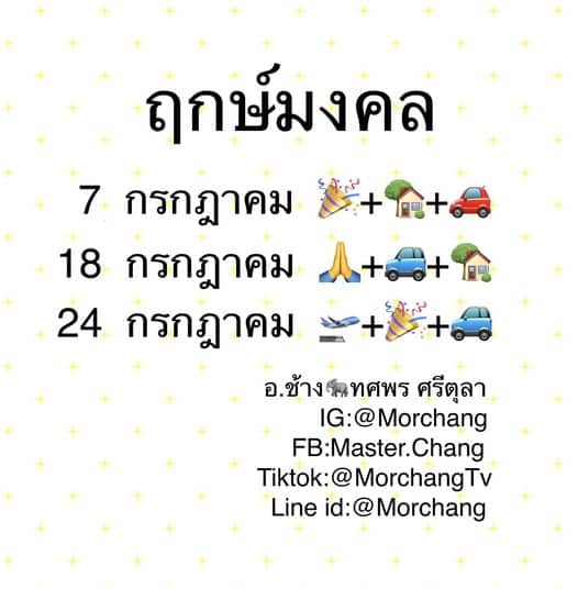 อย่างไรก็ตาม หมอช้างแนะนำว่า ฤกษ์มงคลเหล่านี้เหมาะสำหรับผู้ที่ต้องการความก้าวหน้าในหน้าที่การงาน การเริ่มต้นสิ่งใหม่ ๆ หรือการเสริมสิริมงคลให้กับชีวิต โดยสามารถนำไปปรับใช้ตามความเหมาะสมของแต่ละบุคคลได้ สามารถติดตามผลพยากรณ์เพิ่มเติมจากหมอช้าง ได้ที่เพจ Facebook : หมอช้าง ทศพร ศรีตุลา