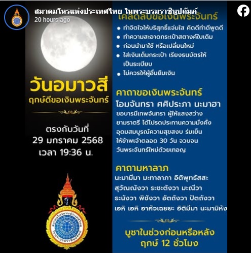 ที่มา :ฤกษ์ดี! วันขอเงินพระจันทร์ 29 มกราคม 2568 เรียกทรัพย์ เรียกโชค